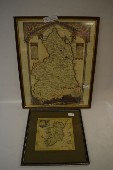 Two Engraved Coloured Maps Ireland and Northumberland