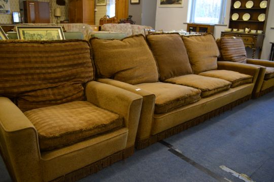 Brown Dralon Upholstered 1950's Three Piece Suite