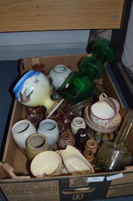 Box of Stoneware, Vases, Part Teaset, Stone Bottles, etc.