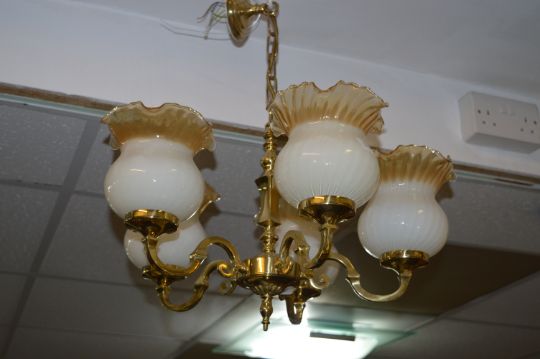 Brass Five Branch Ceiling Light