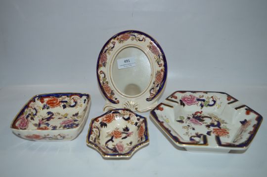 Masons Blue Mandalay Ashtray, Photo Frame and Two Dishes