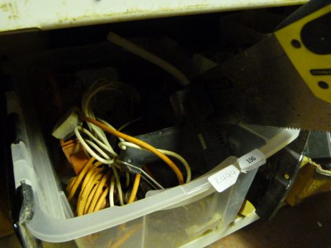 Box Containing Sander, Solder Iron, Inspection Lamp and a Saw