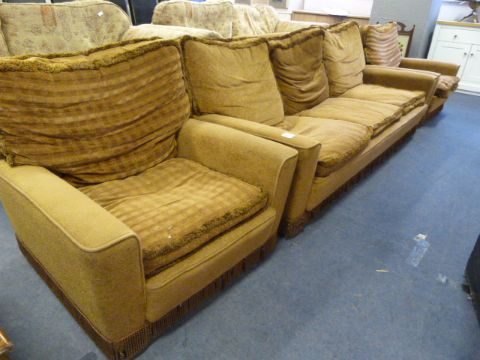 *Brown Dralon Three Seat Sofa with Two Armchairs