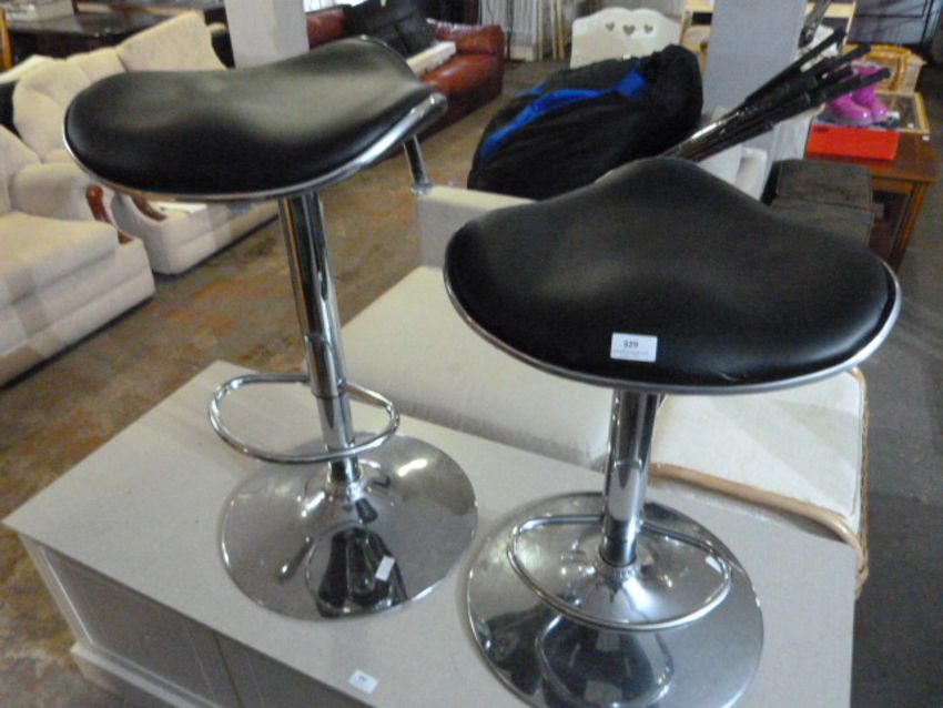 Two Chrome and Black Seated Gas Lift Barstools