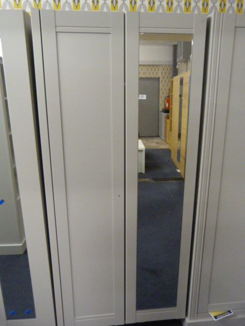 *Grey Double Wardrobe with Mirrored Door