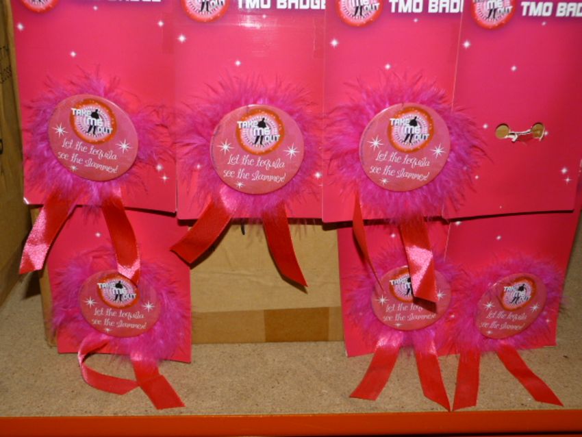 *Box Containing "Let The Tequila see the Slammer" Rosette Badges