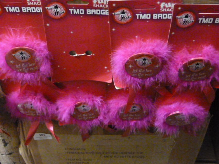 *Box Containing 240 "Let the Hen see the Men" Rosette Badges