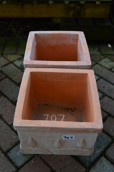 *Two Square Terracotta Plant Pots