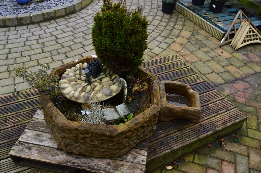Large selection of Pots, Ornaments and Water Features,  Aquatics Department which include stock of New  and Display Ponds, liners, Hoses, Fittings and Filters, Teak, Rattan and Other Garden Furniture, Gazebos and Sheds, Fencing and Tanalised Panels, Post and Gravel Boards, Plant Staging and Display Items, Industrial and Horticultural Barrows, Contents of Sale Shop and a Victorian Garden Roller, Etc…