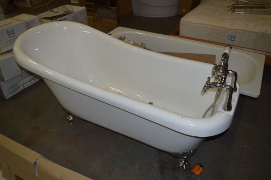 Roll Top Highback Reproduction Bath on Chrome Ball and Claw Feet Complete with Mixer Tap and Bath Filler