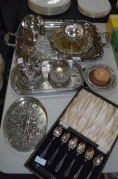 Collection of Silver Plated Ware Including, Trays, Dishes, Cutlery, etc.