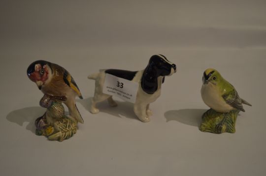 Two Beswick Birds "Goldcrest" and "Goldfinch" and a Beswick Dog