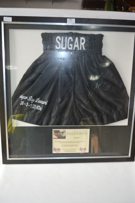 Framed and Signed Boxing Shorts Sugar Ray Leonard
