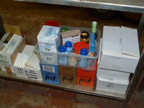Assorted Condiments Including Mayonnaise, Ketchup and Brown Sauce Sachets, Salt and Pepper Sachets, Jam, etc.