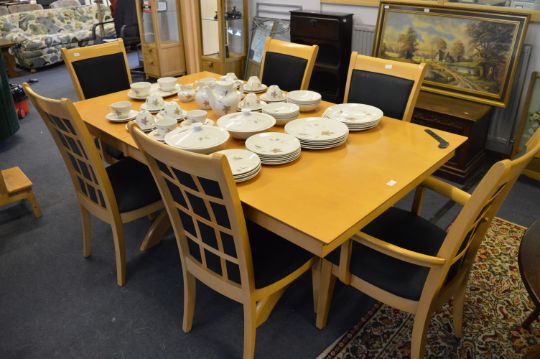 Beech Effect Draw Leaf Dining Table with Four Dining Chairs and Two Carvers