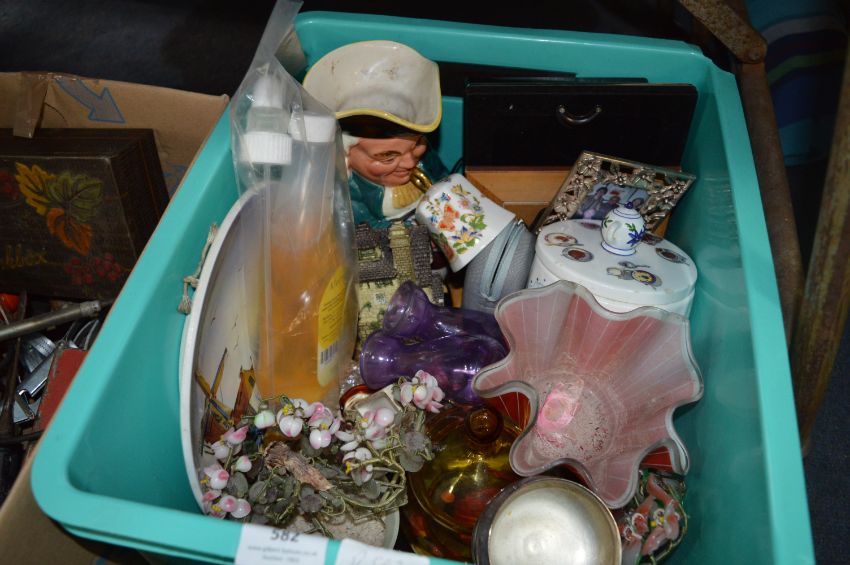 Box Containing Toby Jug, Pottery, Glassware, Ornaments, Photo Frames