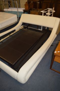 White Leather Double Bed Frame and a Brown Leather Double Bed Frame with Headboard