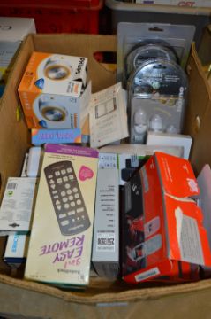 Box Containing Remote Controls, Mobile Phones, Radio Clock, etc.