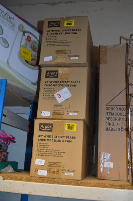 Three 42" White Effect Chrome Ceiling Fans