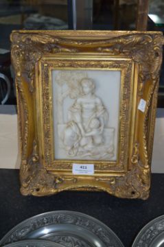 Gilt Framed Italian White Marble Style Embossed Picture