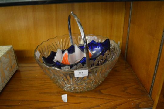 Glass Punch Bowl, Glass and Chrome Bowl and a Handkerchief Vase