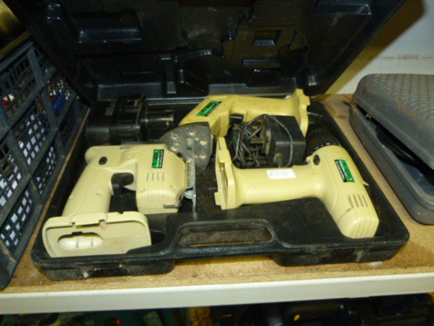 Box Containing a Three Piece Cordless Tool Set