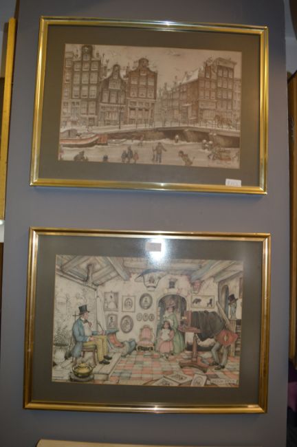 Pair of Framed Anton Pieck Prints "Amsterdam"