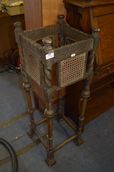 Plant Stand with Turned and Barley Twist Supports and Wicker Panels