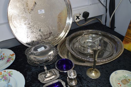 Collection of Silver Plated Ware; Trays, Condiment Sets, Preserve Dish, etc.