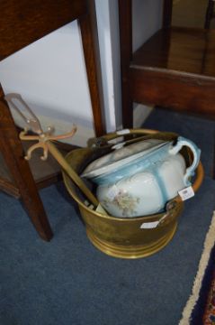 Brass Coal Helmet, Potty and a Companion Set Stand