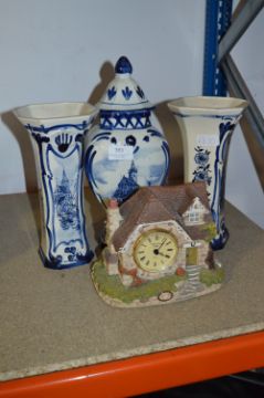 Delft Pottery Vases and a Memory Lane Cottage Clock