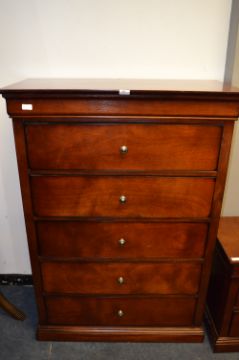 Malaysian Veneered Dark Hardwood Tallboy - Five Height Chest of Drawers