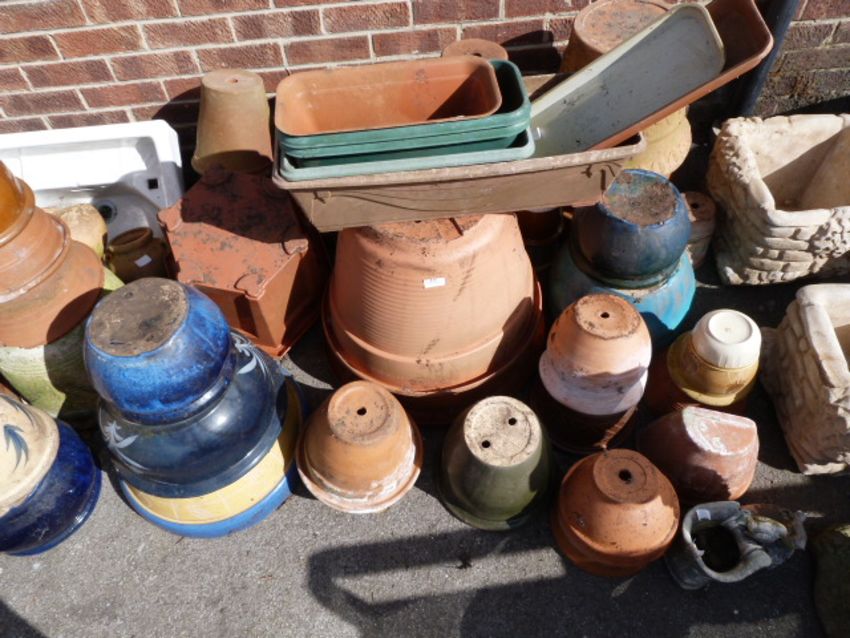 Large Quantity of Terracotta and Blue Glazed Plant Pots