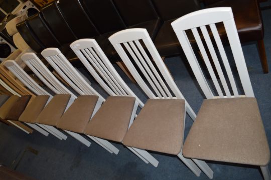 *Set of Six Grey Slatback Dining Chairs with Brown Upholstered Seats