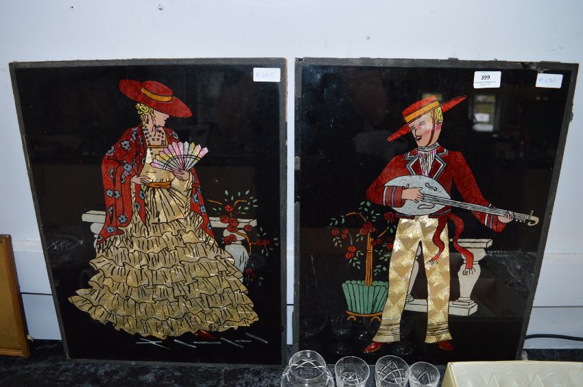 Pair of Silver Foil Pictures on Glass "Spanish Dancers"