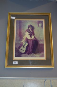 Gilt Framed Print Greek Lady with Guitar