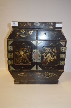 Japanese Lacquered Jewellery Cabinet with Painted Panel Doors