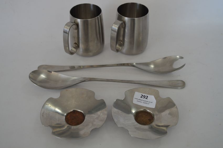 Old Hall Stainless Steel Ashtrays, Serving Set and Mugs Designed by Robert Welsh