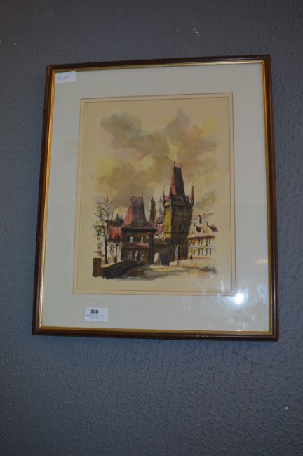 Framed Watercolour "Continental Town Scene"