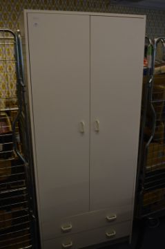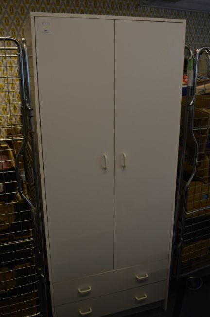 White Melamine Double Door Wardrobe with Two Drawers