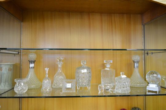 Glassware Including Decanters, Biscuit Barrel, Clock, etc.