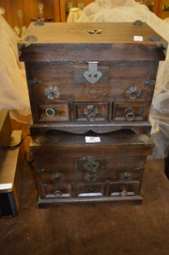Two Metal Bound Wooden Trinket Boxes
