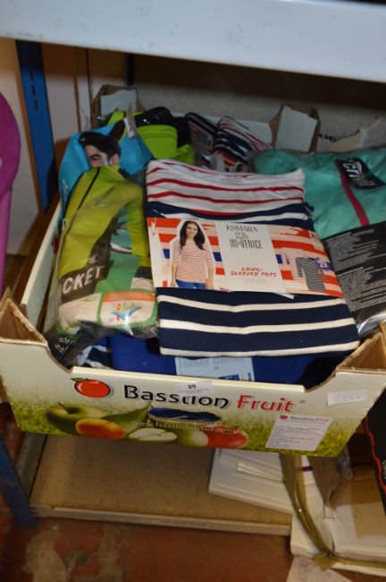 Box Containing Assorted Cycle Clothing, Long Sleeve Ladies Tops, etc.
