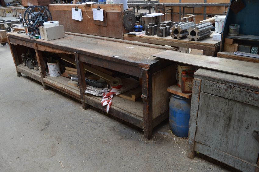 The entire contents of the Structural Timber Engineering Workshop, including Wadkin BRA Cross Cut, Wilson 30DNR 296D Band Saw, Wadkin NM846 Universal Cutter Grinder, Wadkin CD491 Cross Cut, 2 Bag  and Single Bag Extraction Units, Wadkin 5 Head Moulder and NQ722 Sharpener, SCM SI15F Panel Saw , Intertherm Thermal Bonder, Elliott Pillar Drill, Wadkin 24’’ T630 Planner, Wilson Rip Saw, Robinson 187DF/T 1200 Band Resaw, Boere TKKAP1300 Pass Through Sander and other Machinery, Mafell, Bosch, Makita, Holtz Her Hand and Power Tools, Stock of Timber Redwood, Teak, Oak and Others, Adhesives and Work in Progress, Glulam Beams, Sash Clamps, Setting Out Tables, Trestles, Trolleys and Industrial Barrows, Lifting Equipment, Office Furnishings, Drawing Board,  Etc….