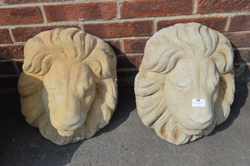 Pair of Reconstituted Limestone Lion Wall Masks