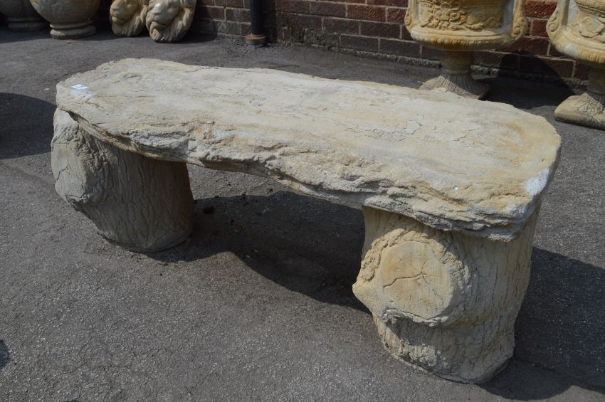 Reconstituted Limestone Garden Bench with Tree Stump Supports