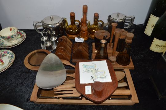 Teak Tableware; Toast Racks, Serving Dishes, Condiments and Old Hall Stainless Steel Teapot & Condiment Set