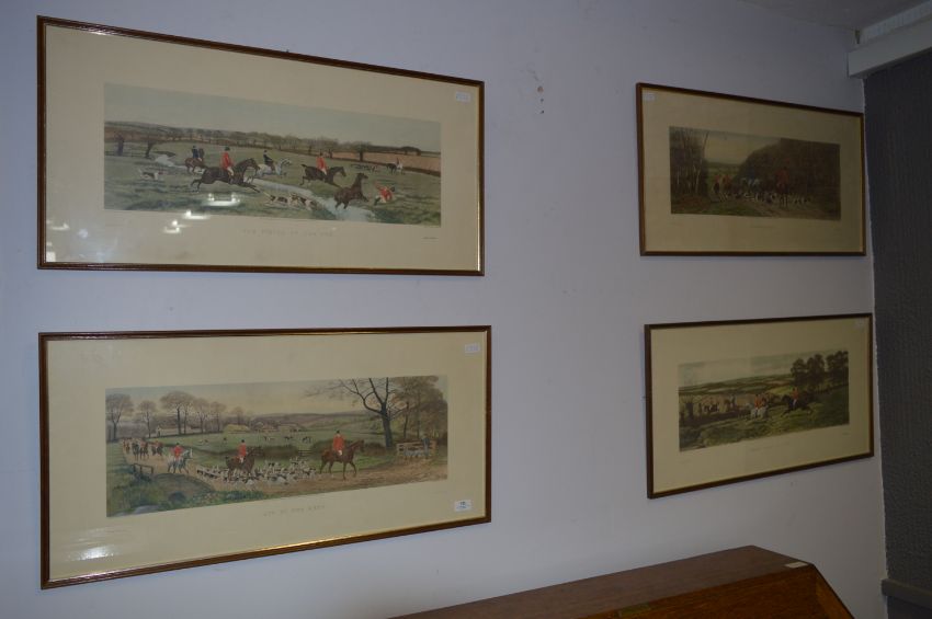 Set of Four Framed Coloured Hunting Engravings