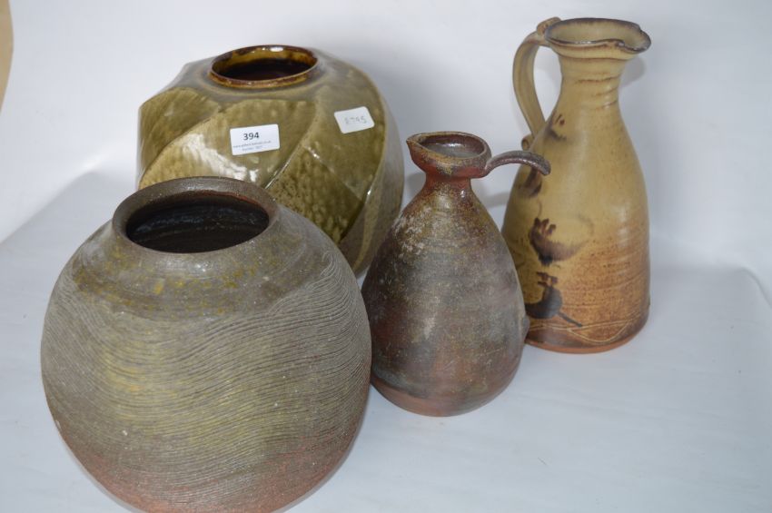 Japanese Pottery; Two Jugs and Two Bulbous Vases