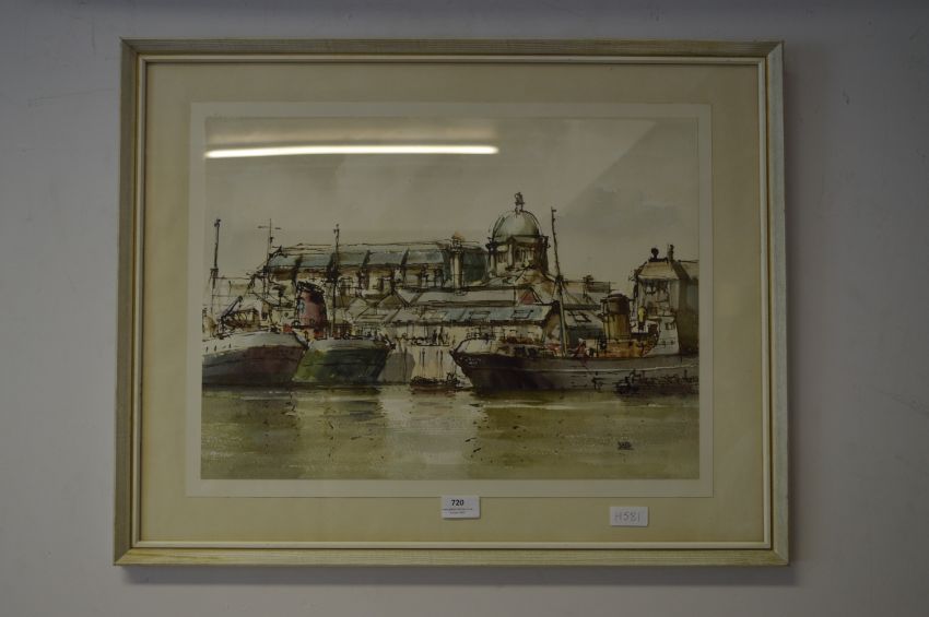 Framed Watercolor "Princes Dock Hull" by Harry Hudson Rodmell